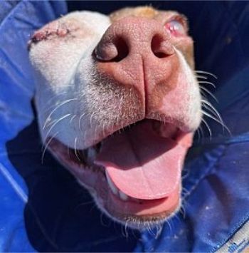 Balin (mighty warrior) came into rescue after being picked up by animal control with severe damage to his eyes. The rescue provided every possible treatment to save his eyes, but the damage and infection was too extensive. Luckily, he is indeed a strong boy, and this has not taken away his joy or his love of life.