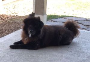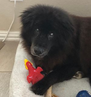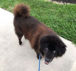 This precious pup is a chow mix, approximately 9 years old. But don’t let his age or blindness (he is blind due to cataracts) fool you, he is a spry, happy go lucky guy who can sure pour on the puppy dog eyes! When he wakes up he will do a happy dance to start the day (whether it is because he is so happy to greet his people or because it is time for breakfast is up for debate) and his joyfulness continues throughout the day (he is equally enthusiastic about bedtime!). Although his happiness abounds, he is mostly an easy going fellow and is content to enjoy the simple pleasures: his meals, leisurely strolls through the yard, chewing a bone, enjoying a cookie and most importantly, being near his people as much as possible. He is a low maintenance boy, doesn’t require a lot of walking and would thrive most in a laid back environment with someone patient, who doesn’t mind talking a lot (your voice will help guide him) and who can give him helpful hints to help him on his way (like “bump” warnings, etc).