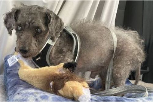 Little Marty is a sweet, easy-going little mini poodle guy who gets along with dogs and cats and people of all ages. His breed is guessed at as a full blooded mini poodle. His estimated age is about 13 but he's a very quick-stepping little man and enjoys exploring his environment, especially outside. He can find his way to the door and he was doing a great job at pottying outside until his foster mom went back to work a couple weeks ago. He will be very easy to get back in the habit of eliminating outside with a forever family who is home more. He's fairly easy to figure out in that, if he's up and exploring, he needs to go out. :)