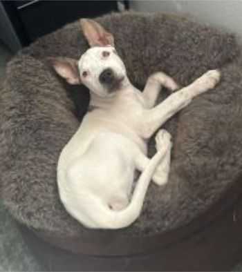 Ray is perfectly imperfect, he exudes warmth and happiness like rays of sunshine! Ray was born blind and while the vet believes he does see blobs he functions like a baby with no sight but those ears help guide him! He is about 14 weeks old, 12lbs, a pittie, maybe cattle dog mix, we aren't sure but what it is is C-U-T-E! Ray, his two siblings and mom were found as strays a few weeks back and landed in a rural shelter, it didn’t take the shelter staff long to realize Ray was special.