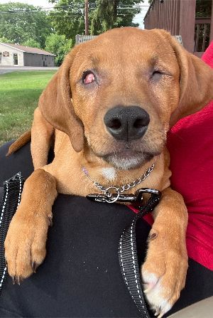 Notes: He was born blind and does have eye tissue left in both eyes. He always keeps one eye closed. The other, the vet says, is fine.